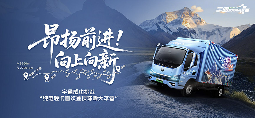 昂扬前进!向上向新——宇通成功挑战“纯电轻卡首次登顶珠峰大本营”