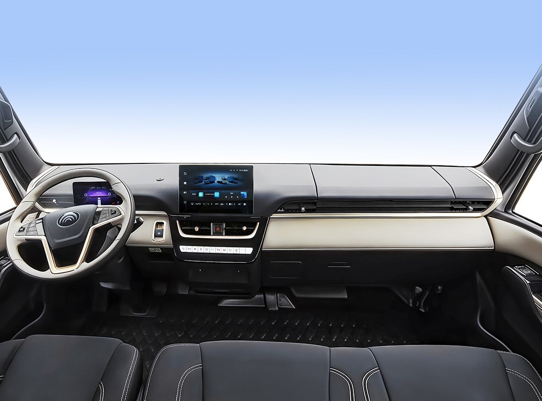 坚持“以人为本”的设计理念,打造人性化驾驶室,以悬浮式羽翼造型为核心,采用贯通式上平面拉平仪表台大面积皮革包覆,贴心设计20处储物空间